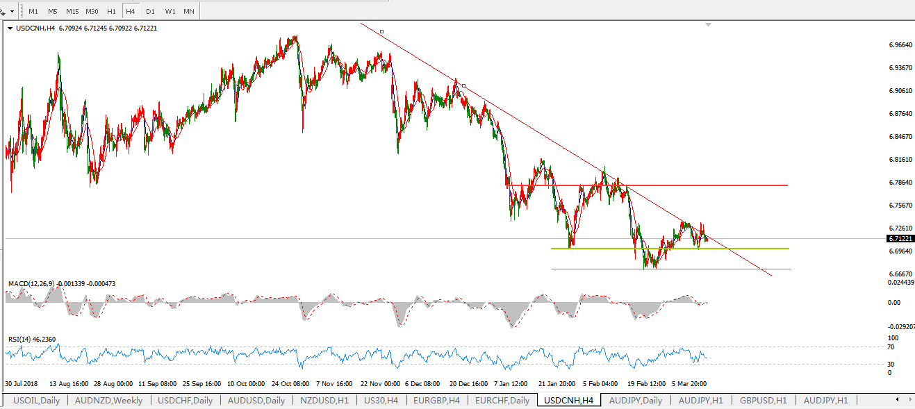 备选策略: 6.6990之下,看跌,目标价位为6.6730,然后为6.6325