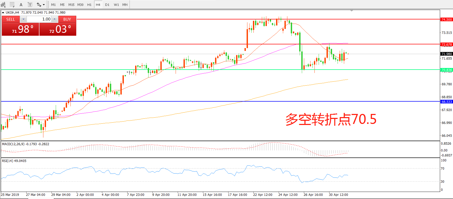 交易策略:在70.50 之上看涨,目标72.50     74.50