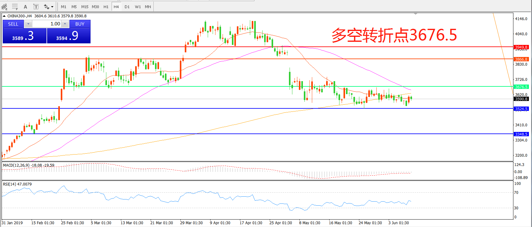 4小时图看,沪深300指数日内虽有反弹,但整体仍然处于低位震荡状态, 均线系统逐渐粘合,MACD绿柱缩短,RSI指标拐头向下,近期以窄幅整理思路对待。