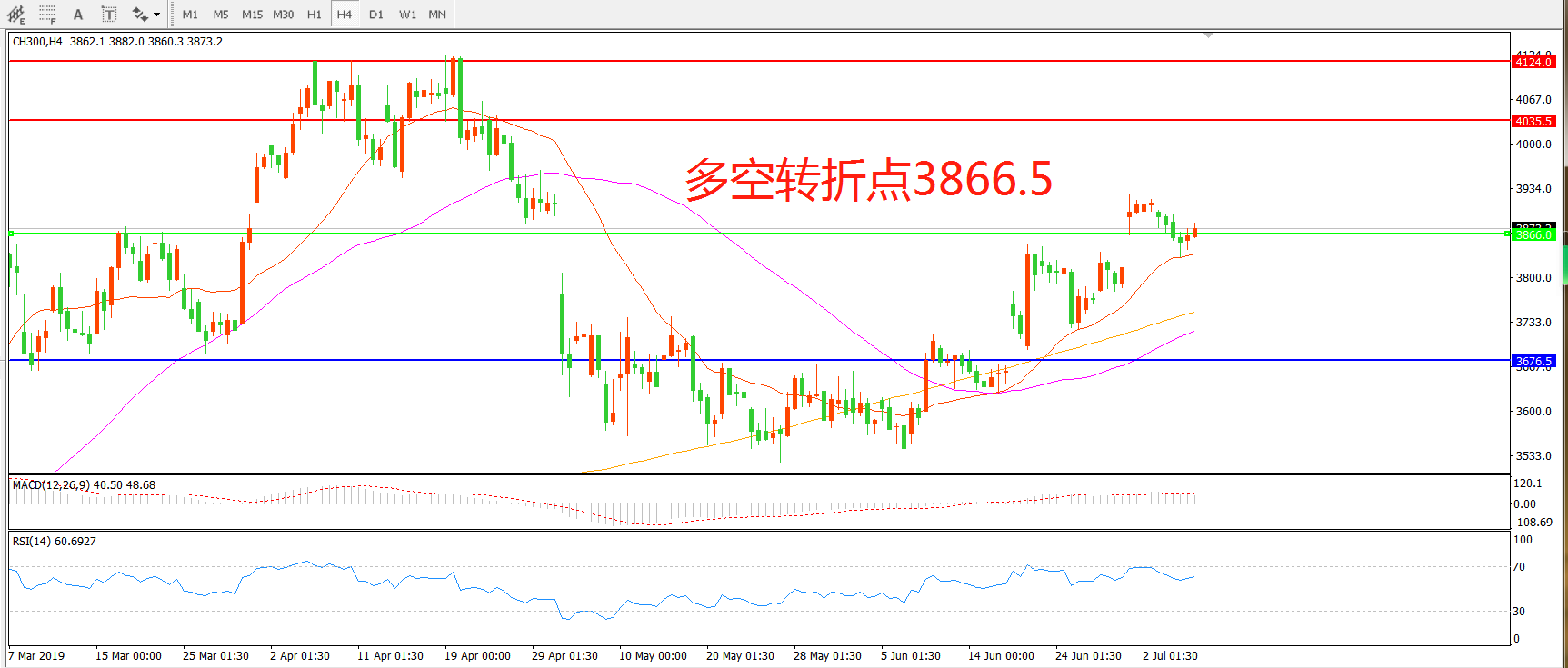 4小时图看,沪深300指数触碰3900附近后震荡回落,但均线系统依然呈现多头排列,MACD红柱增加,RSI指标走平,日内延续震荡上行概率较大。