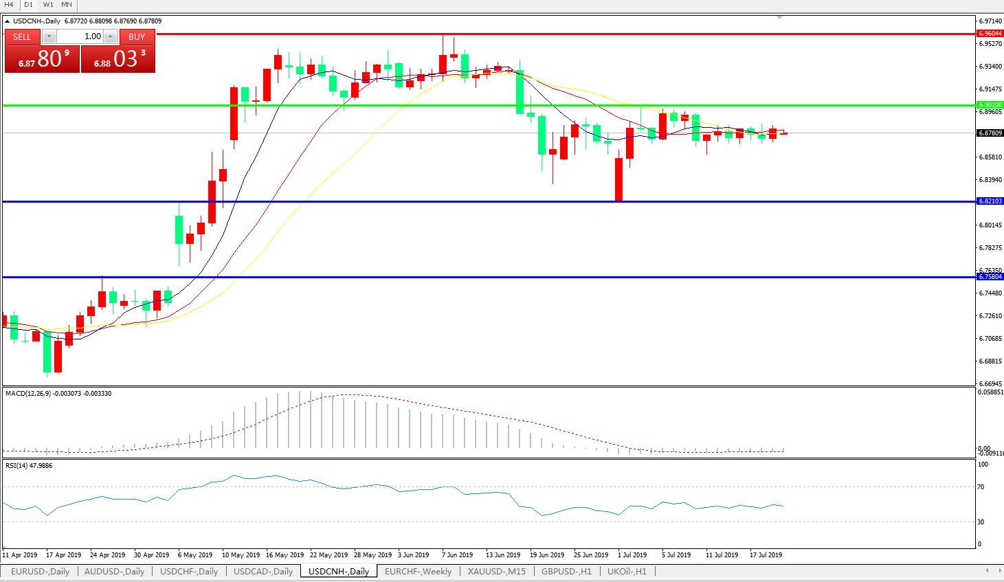 技术面简析:日图均线继续粘合无方向,MACD徘徊在0轴附近且动能柱若隐若现,RSI趋于走平,行情缺乏关键信息指引,预计短期汇价将继续整理或向下修正,中期关注6.9010附近多空转折区域压制是否有效及中美贸易谈判最新进展。