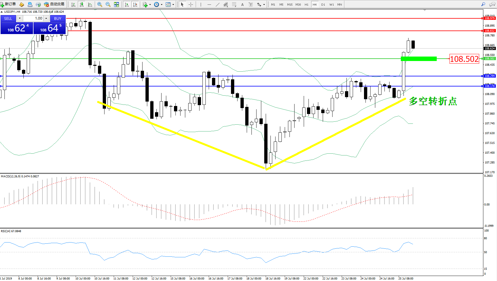 技术点评:低位上行态势良好,延续多头上行走势,突破布林带指标上轨后短暂震荡,未有指标迹象,MACD指标0轴上方多头上扬中,RSI指标多头区域有拐头迹象;