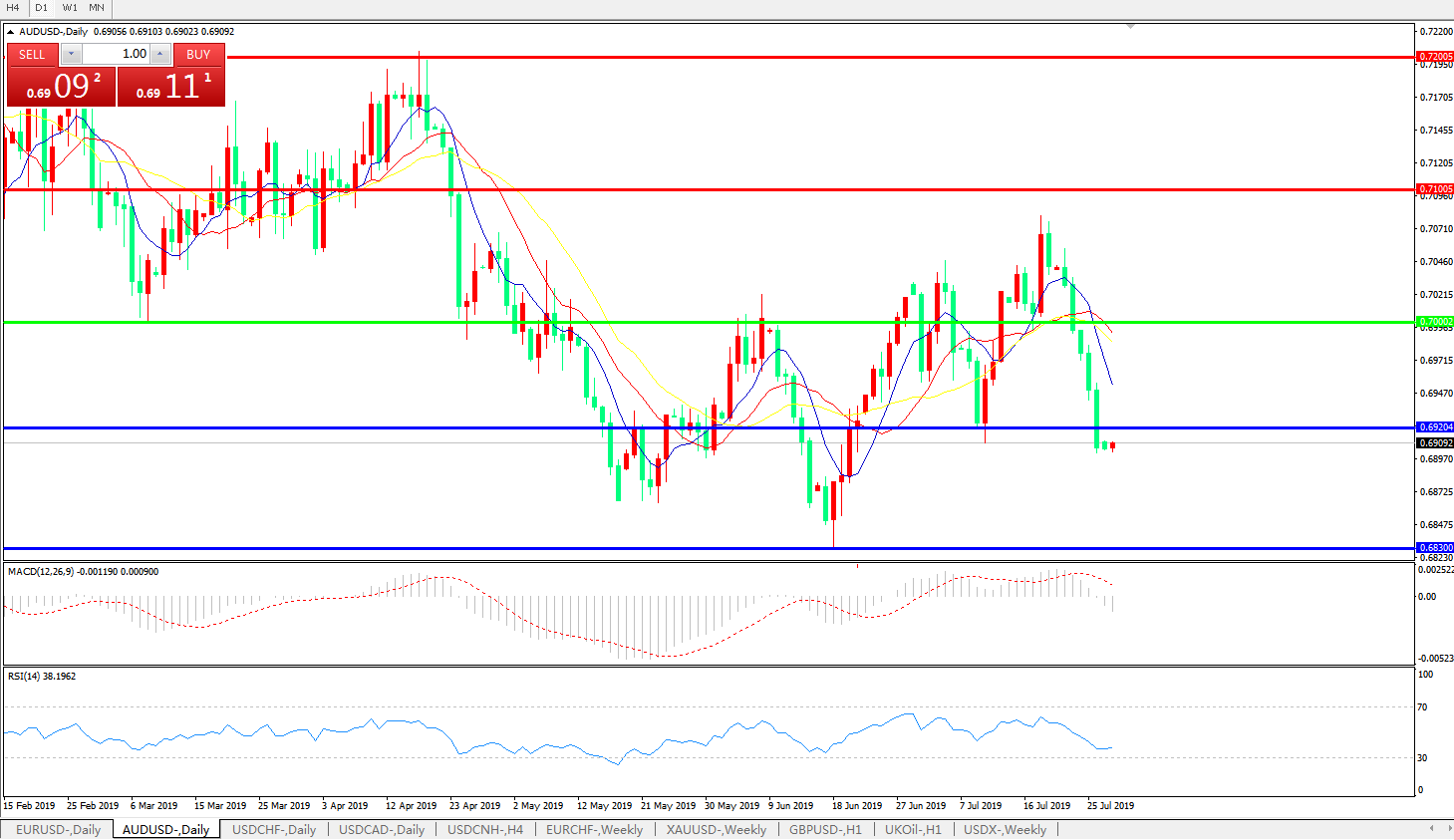 交易策略:0.7000下方看跌,目标0.6920、0.6830