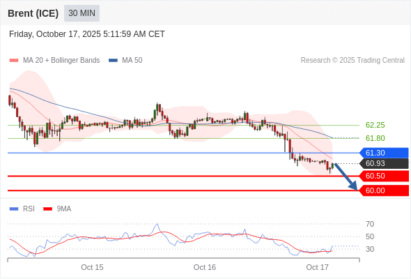 在 61.30 之下,看跌,目标价位为 60.50 ,然后为 60.00 。