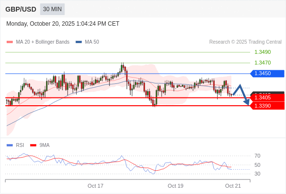 交易策略: 在 1.3450 之下,看跌,目标价位为 1.3405 ,然后为 1.3390 。