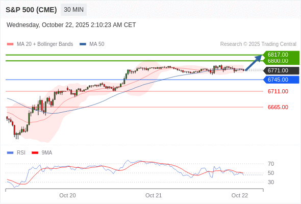 在 6745.00 之上,看涨,目标价位为 6800.00 ,然后为 6817.00 。