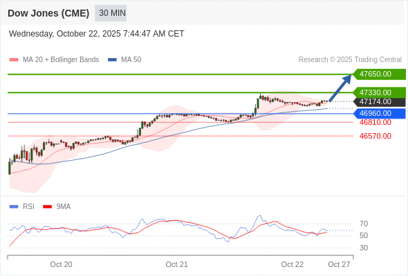 在 46960.00 之上,看涨,目标价位为 47330.00 ,然后为 47650.00 。