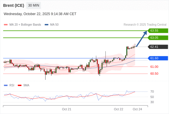 在 61.60 之上,看涨,目标价位为 63.05 ,然后为 63.55 。
