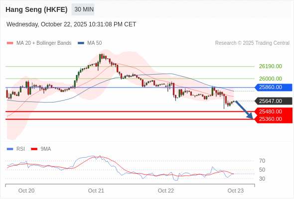在 25860.00 之下,看跌,目标价位为 25480.00 ,然后为 25360.00 。