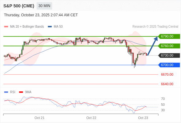 在 6700.00 之上,看涨,目标价位为 6760.00 ,然后为 6790.00 。