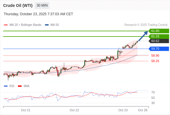 在 59.70 之上,看涨,目标价位为 61.15 ,然后为 61.80 。
