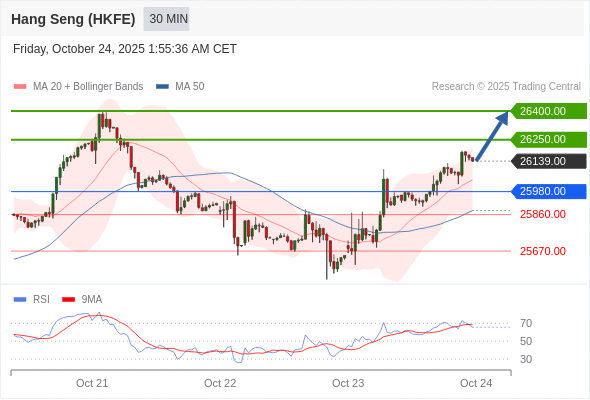 在 25980.00 之上,看涨,目标价位为 26250.00 ,然后为 26400.00 。