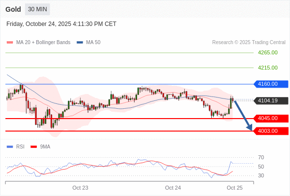 黄金现货 当日内: 短期关键阻力位在4160.00。