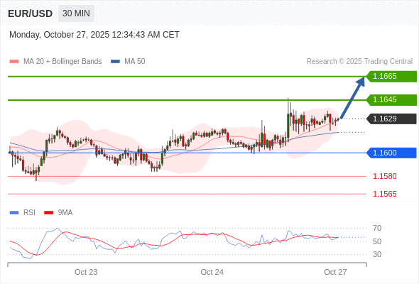 在 1.1600 之上,看涨,目标价位为 1.1645 ,然后为 1.1665 。