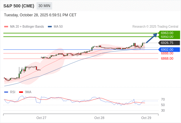 在 6902.00 之上,看涨,目标价位为 6950.00 ,然后为 6963.00 。