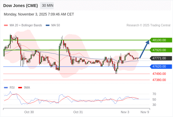 在 47620.00 之上,看涨,目标价位为 47920.00 ,然后为 48100.00 。