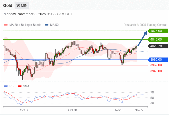 在 3980.00 之上,看涨,目标价位为 4045.00 ,然后为 4073.00 。