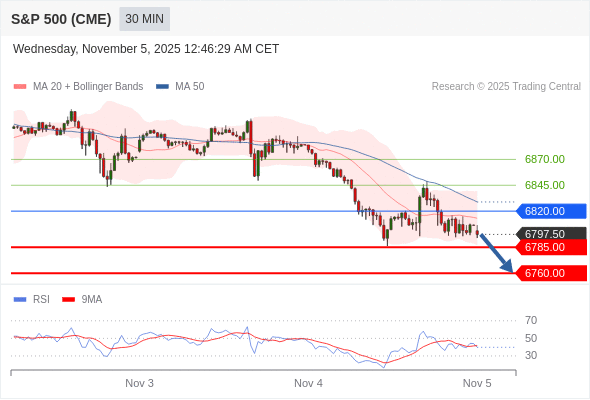 交易策略: 在 6820.00 之下,看跌,目标价位为 6785.00 ,然后为 6760.00 。