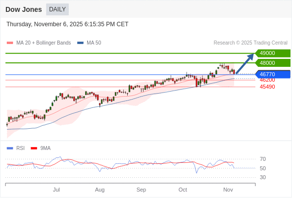 在 46770 之上,看涨,目标价位为 48000 ,然后为 49000 。
