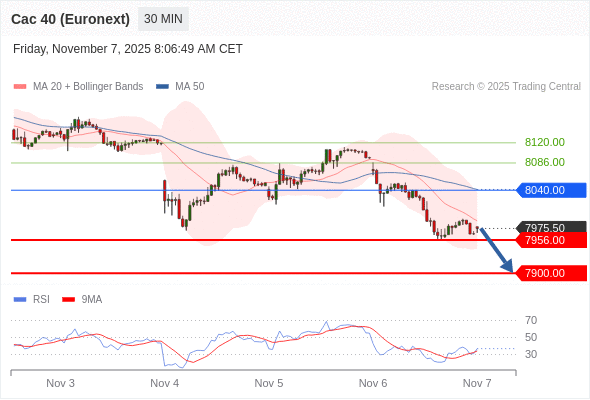 在 8040.00 之下,看跌,目标价位为 7956.00 ,然后为 7900.00 。