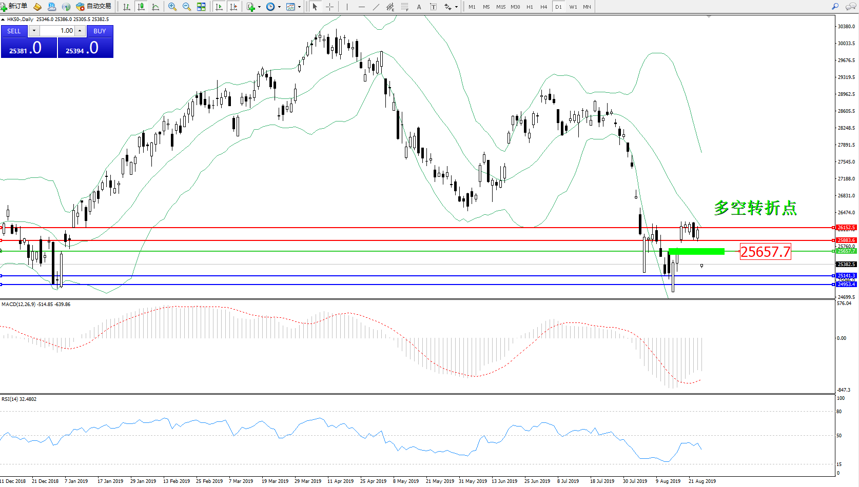 香港恒生指数8月23日(周五)收盘上涨130.61点,涨幅0.50%,报26179.33点;周线涨1.73%,五周来首次收涨。恒指近几日表现不俗,其受美股的影响逐渐在减弱,而与A股走势的相似度较高。综合来看,首先美股表现并不差,再加上当前国内政策对股市的影响较为积极,预计恒指近期或将走出窄幅上行的行情。。中国宣布对美国的关税政策采取反制措施,对近750亿美元美国商品加征关税。特朗普连发12条推特。要求美国企业尽快停止在中国进行采购。