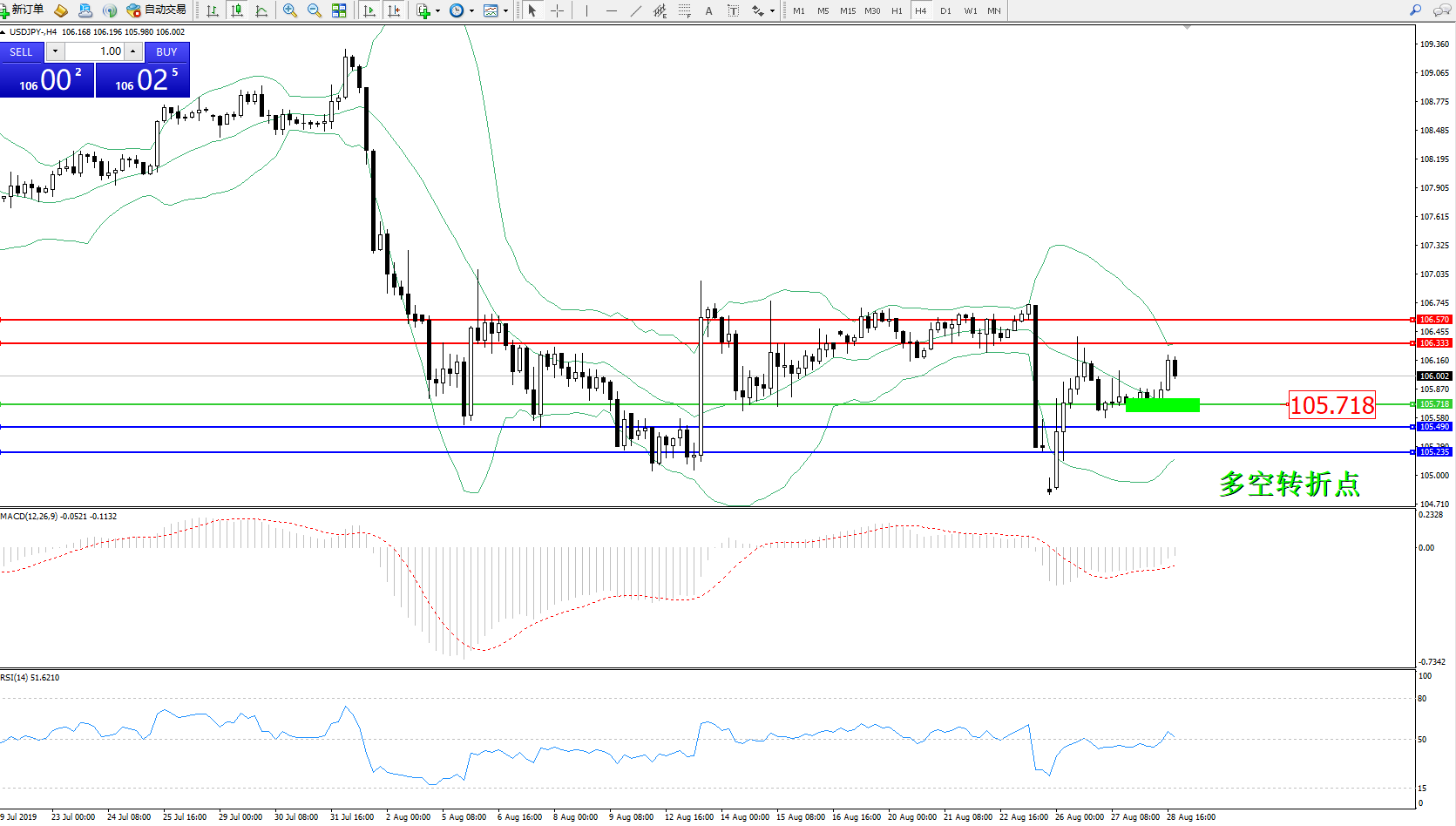 技术点评:低位宽幅震荡已有数日之久,短暂回升刚破位布林带指标中轨附近压制进入中上轨区间震荡中,布林带指标呈收口态势,MACD指标0轴下方窄幅整理中,RSI指标50均衡线下侧弱势整理后破位进入多头区域震荡;