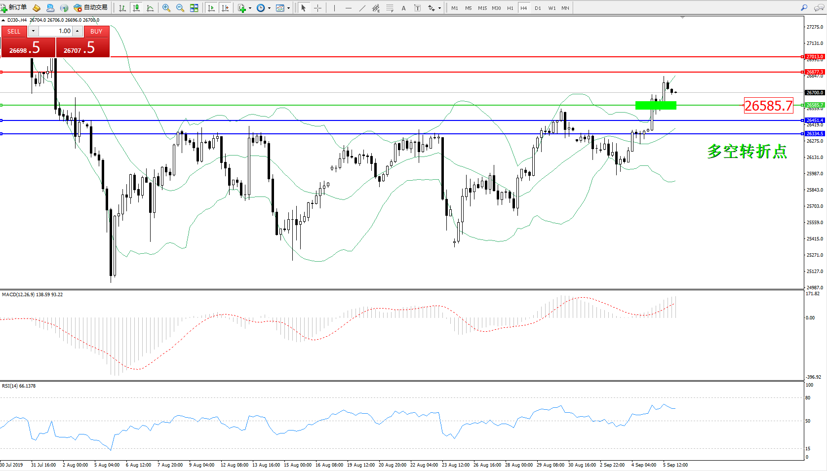 道琼斯指数9月5日(周四)收盘上涨372.70点,涨幅1.41%,报26728.15点。因经济数据增强了对美国经济的信心,且贸易紧张局势缓解。防御性板块回落,因为强劲的民间就业数据和炙热的服务业缓解对经济衰退的焦虑。富时罗素表示,不断升温的贸易紧张局势已成为数月来最大的股市逆风,因此计划10月初举行高级别贸易谈判的消息刺激股市释放性上涨并不令人意外,归根结底,股票需要盈利增长才能向前发展,而如果没有贸易关系的进展,就无法做到这一点。