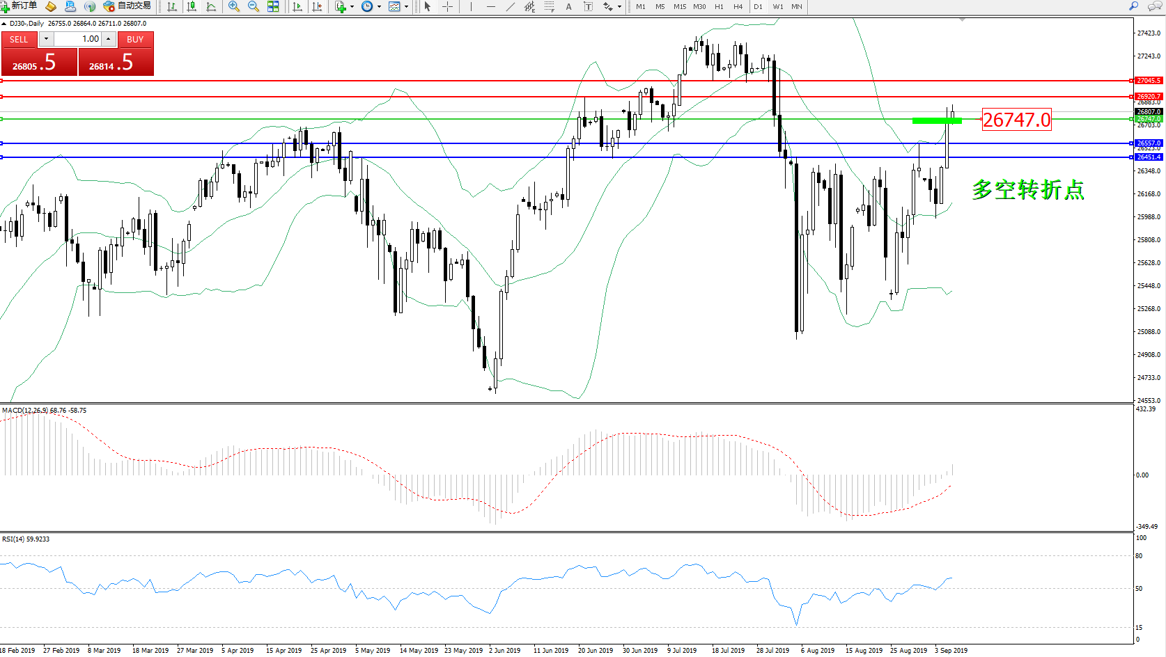 道琼斯指数9月6日(周五)收盘上涨69.30点,涨幅0.26%,报26797.46点。8月美国新增就业人数低于预期,上个月美国企业新增13万个工作岗位,低于预测的16万,但时薪增长0.4%,略高于分析师预测的0.3%。8月就业市场报告喜忧参半,强化了经济扩张放缓以及美联储可能进一步降息的观点。鲍威尔预计美国和世界经济将温和增长,但表示联储正在监测“重大风险”。美联储将降息以维持有纪录以来持续时间最长的经济扩张,因经济前景面临的重大风险将为进一步宽松政策提供理据。
