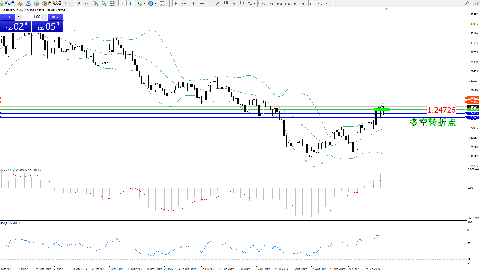 交易策略:1.24726上方看涨,目标1.25446、1.25862
