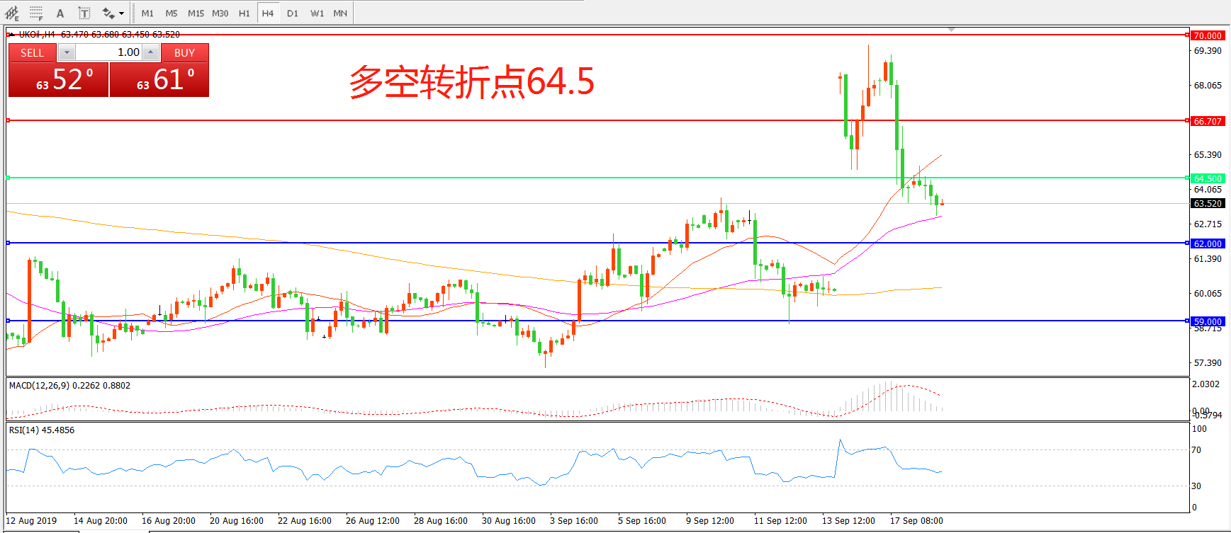 交易策略:在64.50之下看跌,目标62.00 59.00