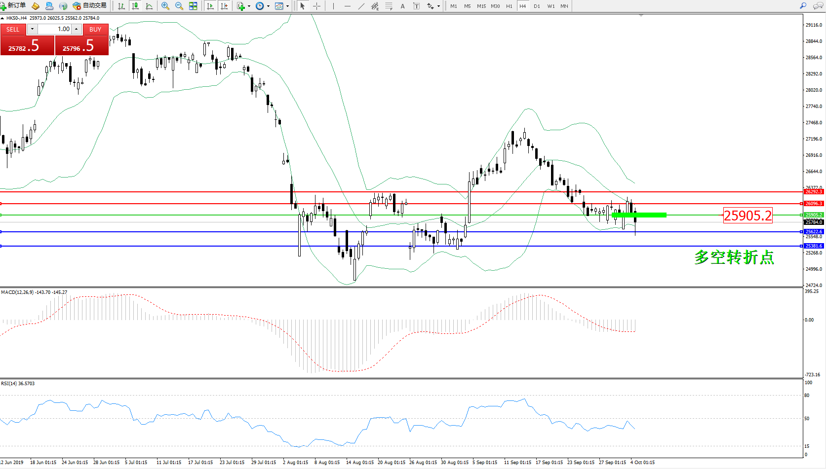 香港恒生指数10月4日(周五)收盘下跌289.28点,跌幅1.11%,报25821.03点;香港恒生指数本周累跌0.52%,截至收盘,恒指大市成交额为683.96亿港元(上一交易日成交额为625.69亿港元)。三季度香港市场的估值、投资者仓位和资金流入额都处于历史低位,这些都是港股市场触及阶段性底部的信号,未来1-2年内市场上行概率远高于下行概率。通过与全球市场进行横向对比,当前市盈率为9.6倍的港股是全球最便宜的市场之一。查阅历史数据可以发现,港股目前估值处于历史偏低位置,其中有四分之一的港股通股票的股价处于过去5年的最低位附近。