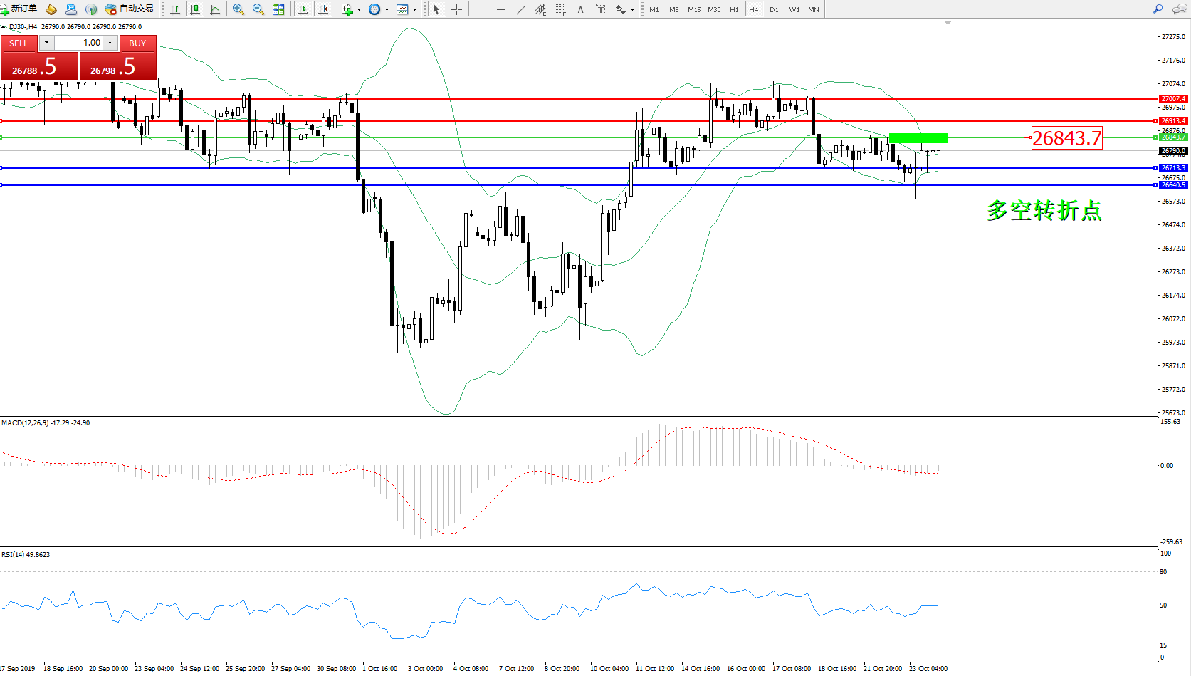 备选策略:26843上方看涨,目标26713、26640