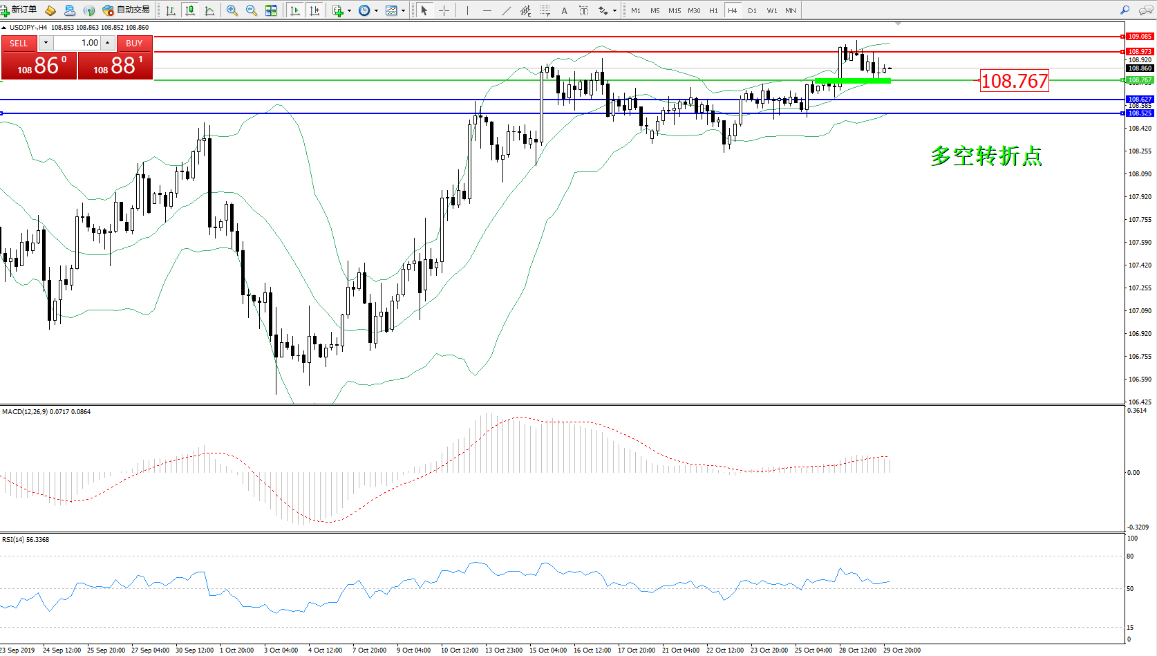 美元兑日元现报108.89,持平;隔夜在贸易领域乐观消息面情绪进一步发酵的背景下,美股创出新高,也间接打压了避险日元的买需,这终于推动美元兑日元升破109关口。不过,美元兑日元汇价仍缺少进一步上行动能,继续受阻于200日均线水平,因投资者面对之后的美联储及日本央行政策决议仍有忌惮,本周四日本央行政策会议仍有大概率将按兵不动,不跟进美联储和欧洲央行主导的强化宽松竞赛,这也令日元汇价依旧保持坚挺,美元兑日元欲破位上行仍需更多全球乐观消息提振。