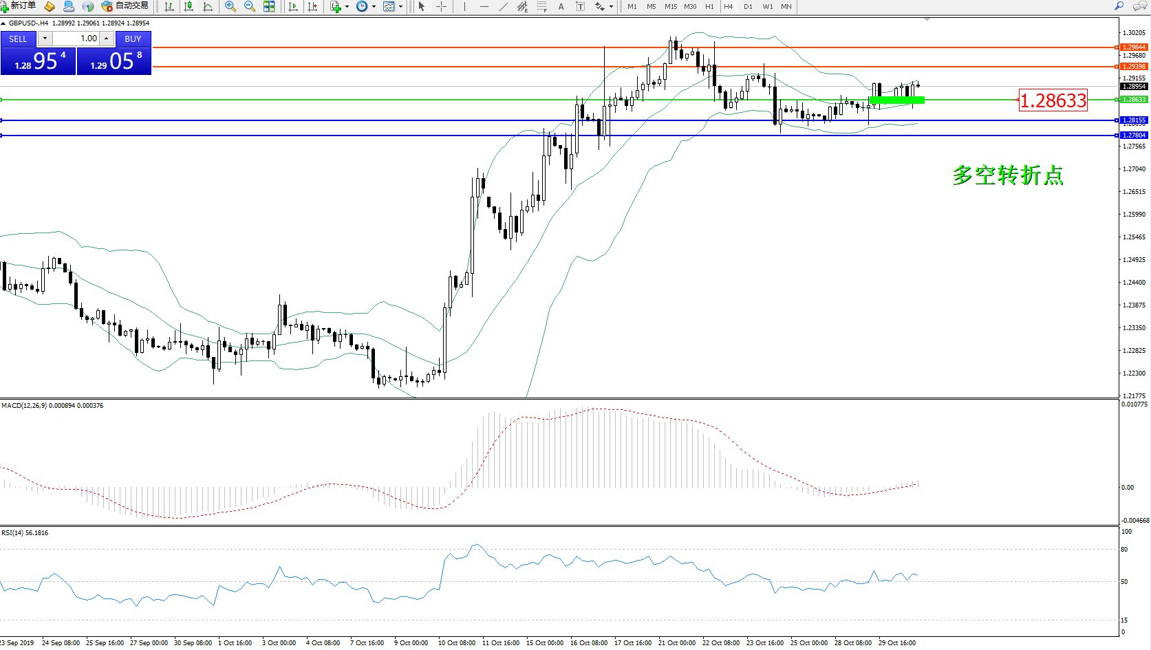 交易策略:1.28633上方看涨,目标1.29390、1.29844