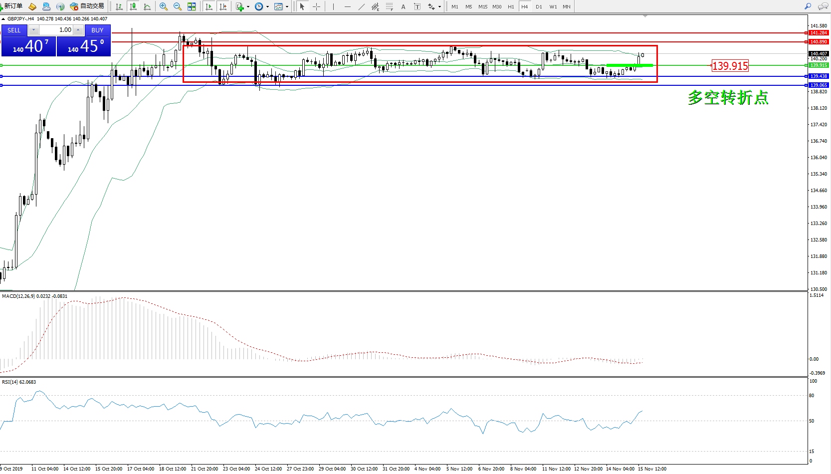 交易策略:139.915上方看涨,目标140.890141.284
