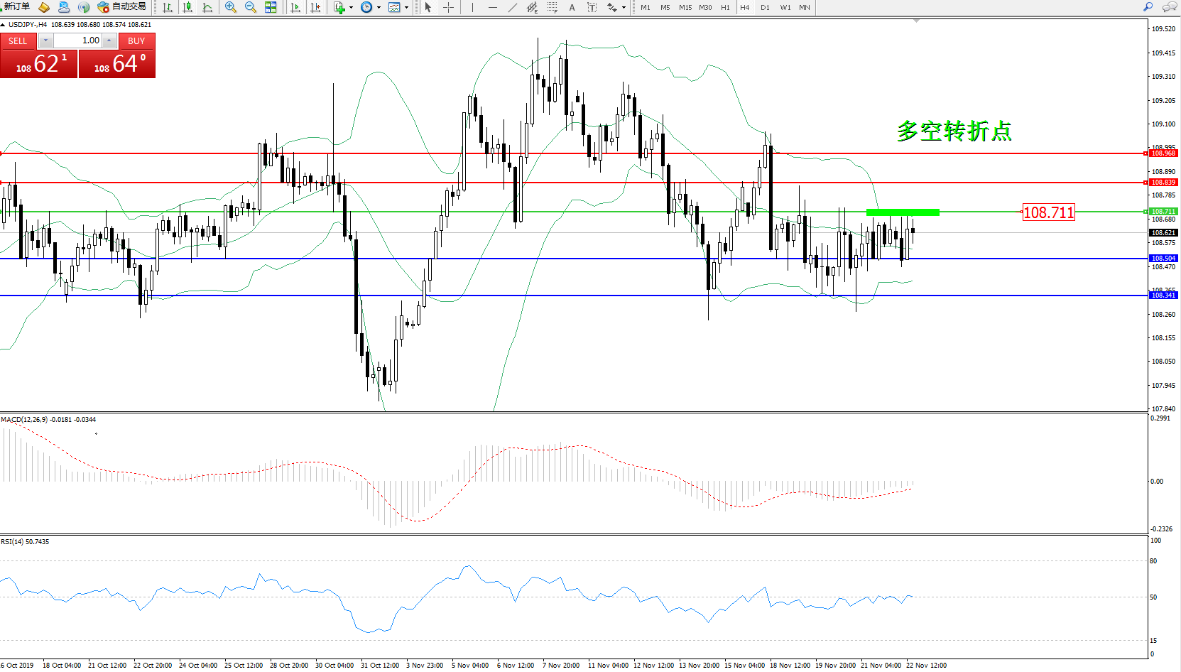备选策略:108.711上方看涨,目标108.839、108.968