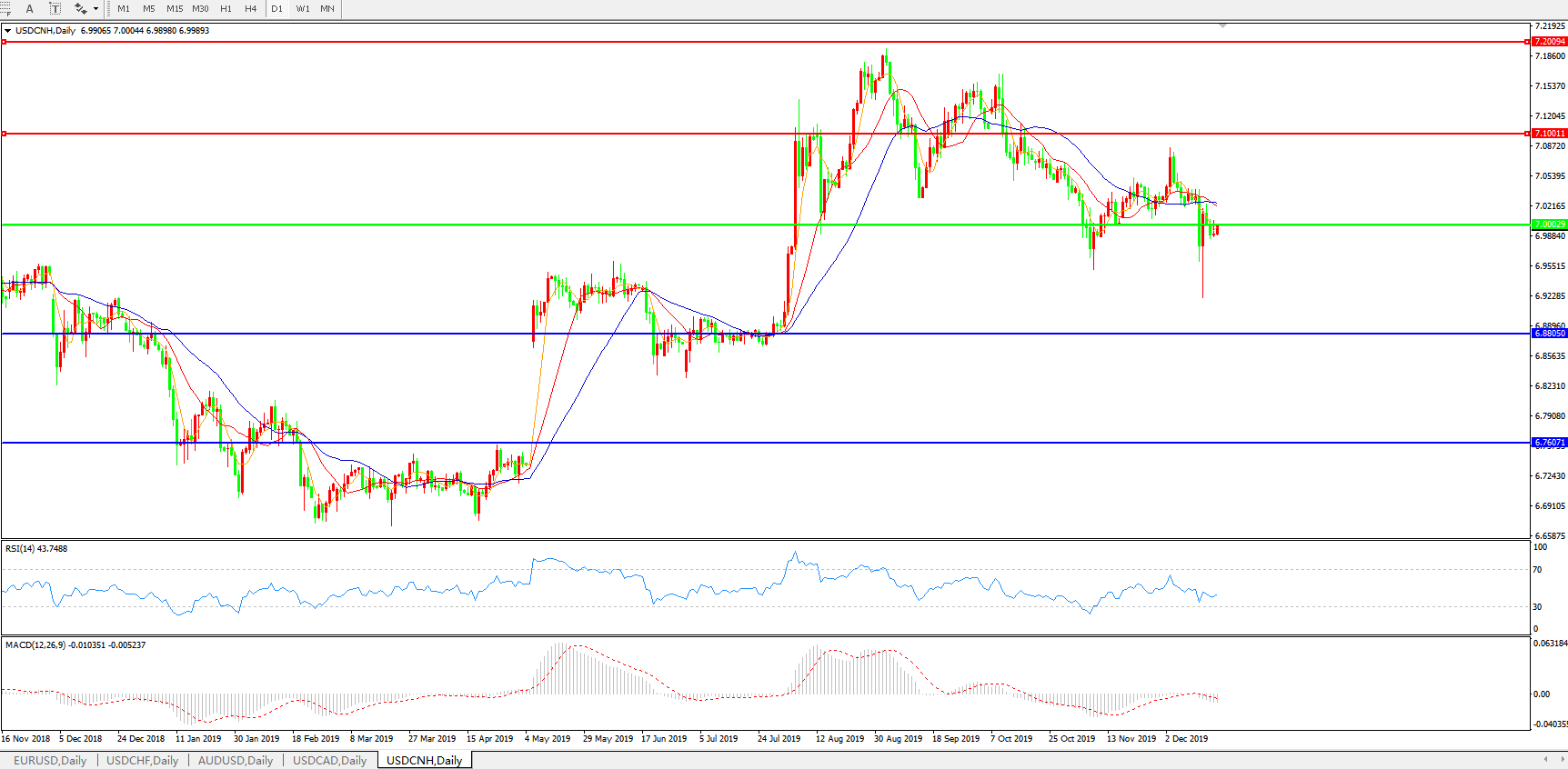 交易策略: 在7.0000之下,看跌,目标价位为6.8805,然后为6.7600。
