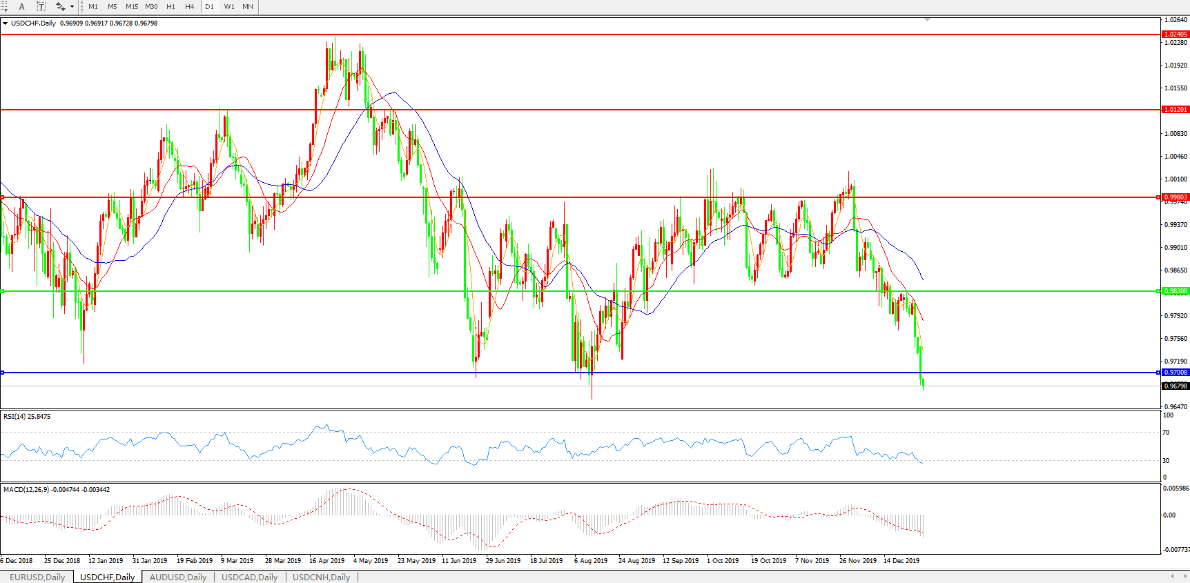 技术面简析:日线图均线呈有序空头排列,汇价接连跌破重要支撑并不断下行,MACD持续下行且量能加速放量,RSI震荡走低,预计汇价将进一步下行。