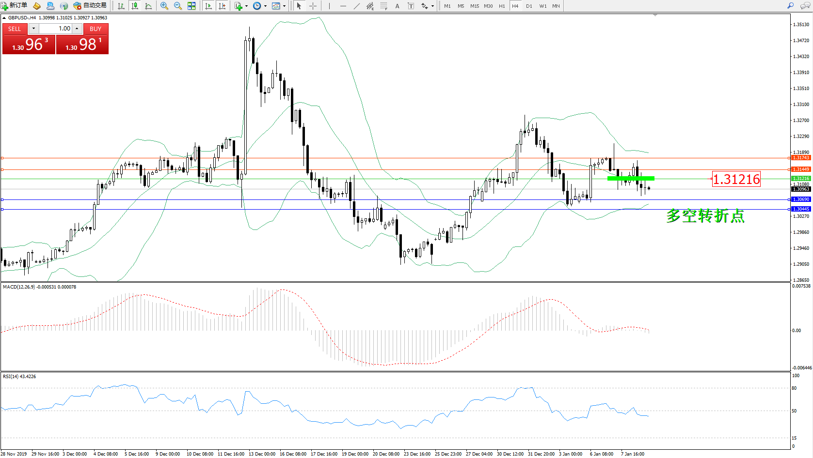 交易策略:1.31216下方看跌,目标1.306901.30445
