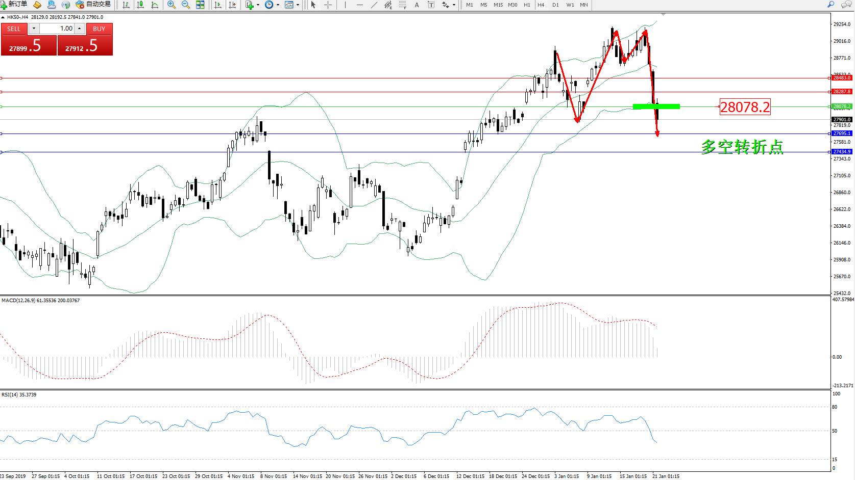 香港恒生指数1月21日(周二)收盘下跌810.58点,跌幅2.81%,报27985.33点;恒生香港中资企业指数收跌3.03%,报4437.47点。恒生12个分行业指数全线走软,其中非必需性消费品、必需性消费品指数跌幅最高,分别下跌3.67%、3.59%;医疗保健业、公用事业指数跌幅最低,分别下跌1.38%、1.46%。资金流向方面,沪港通南向资金剩余421.39亿元,流出1.39亿元。深港通南向资金剩余409.54亿元,流入10.46亿元。消费股遭受重创。航空、餐饮、影视板块均普跌。受国内武汉流感消息面影响,部分医药股逆市上扬。港股市场多数股票(超过2000只)反映了中国经济的基本面情况,而从全球比较来看,2020年中国经济增速仍可维持相对较高的增速,港股市场对于全球资金配置者而言具备较高的性价比。