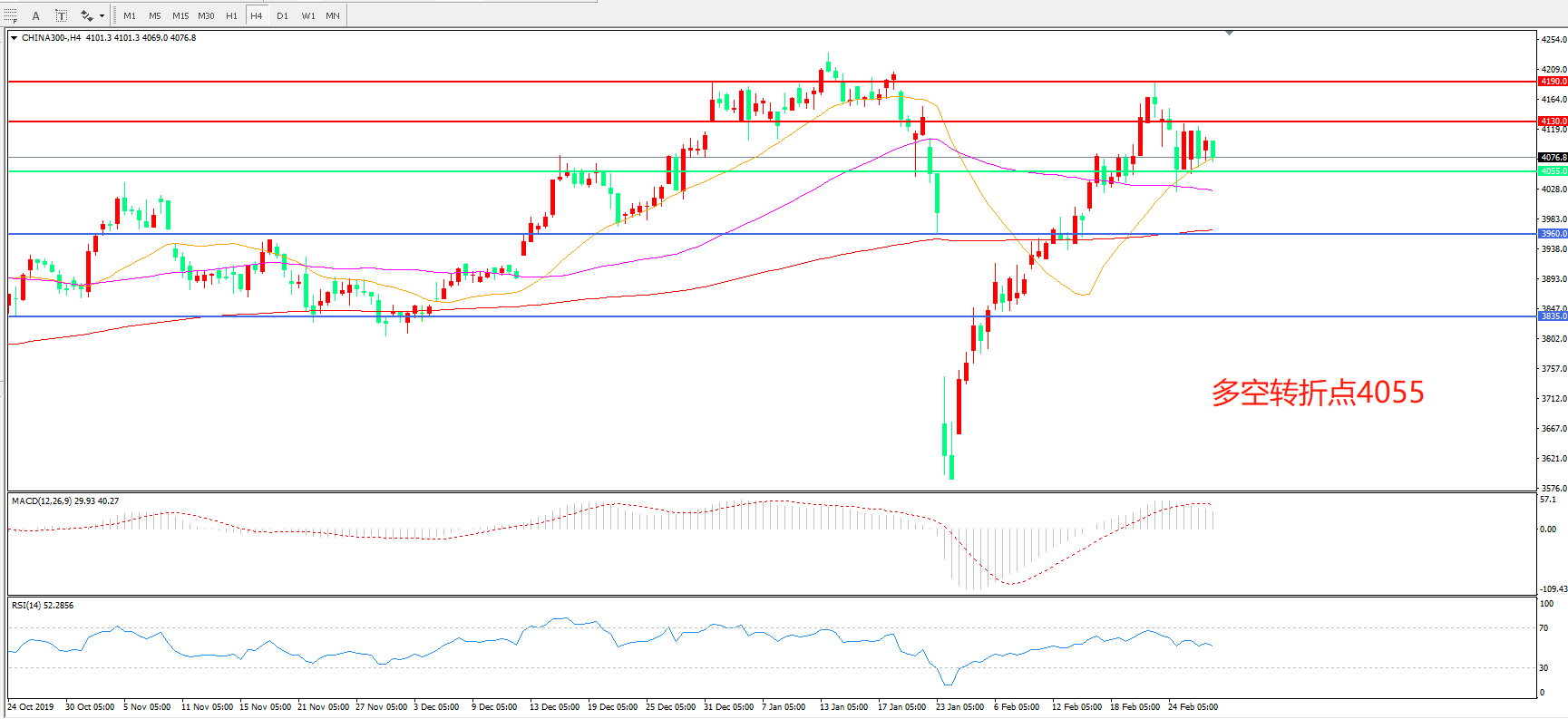 多空转折点:4055.00