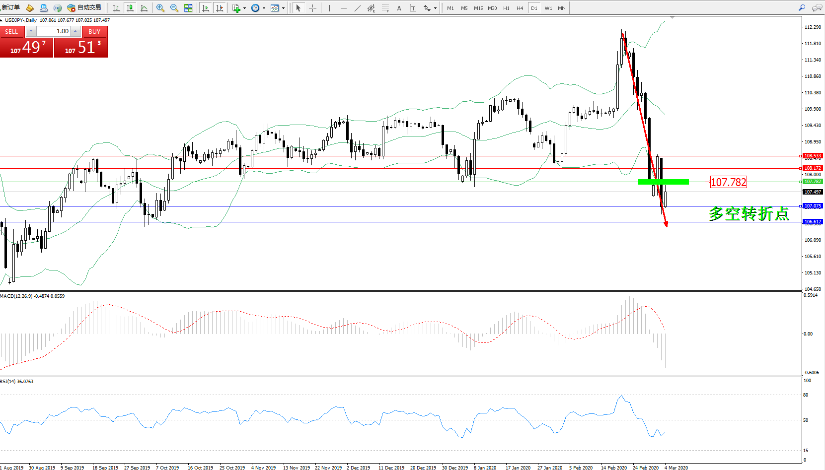 美元兑日元现报107.50,涨0.35%;日元一度获避险需求而走高,日内亚洲股市纷纷冲高回落,投资者对美联储的降息有所预期,但其他国家很难采取更多行动,同时全球疫情的发展仍没有完全控制住,对全球经济的担忧情绪没有减弱。但机构调查显示在美联储降息后,65%的受访经济学家预计日本央行在3月进一步宽松,这带给日元一定压力。全球股指纷纷反弹,对全球经济的悲观情绪有所改善,同时机构调查显示在美联储降息后,65%的受访经济学家预计日本央行在3月进一步宽松,这带给日元一定压力。