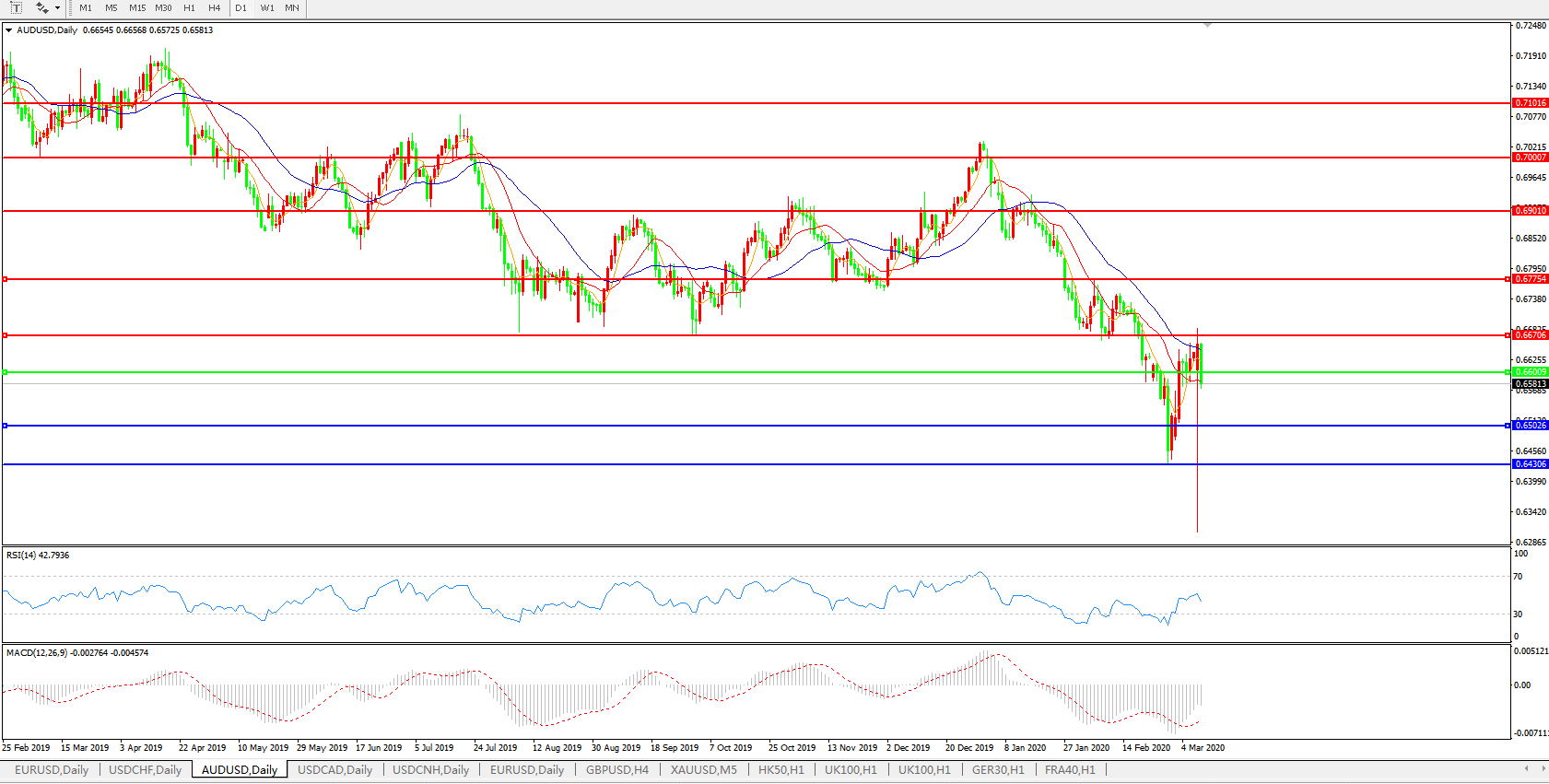 技术面简析:日图均线呈空头排列但短期均线拐头迹象明显,汇价大跌后回升徘至0.66关口附近,MACD于0轴下方逐步止跌且量能收缩,RSI小幅回升后再度承压,预计汇价大概率将延续整理态势。