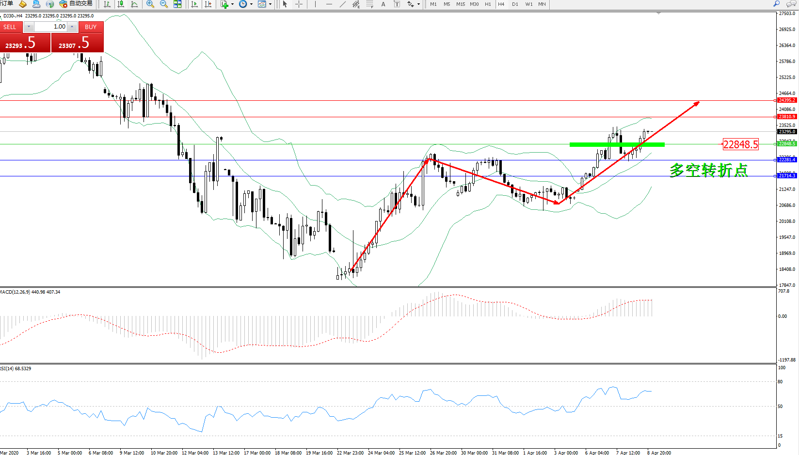 道琼斯指数48日(周三)收盘上涨779.70点,涨幅3.44%,报23433.57点。美国股市重新回到技术性牛市区域,投资者对新一轮刺激措施及经济解封前景持乐观态度。房地产,能源和公用事业板块领涨。市场似乎在权衡利弊,尽管实时经济数据不佳,但市场紧紧抓住了有关疫情的乐观迹象。尽管股市上涨,许多投资者仍然不愿太过冒险,因为预期一些大型经济体(美国,日本,德国,法国和英国)的新冠病例仍将快速增长。市场还担心,财政刺激措施来得太晚或力度不够。美联储实施了史无前例的货币刺激政策,美联储实施“零利率+开放式量宽政策”,加上美联储美元回购操作向市场注资超1.5万亿美元,美联储资产负债表规模已超过5.8万亿美元。