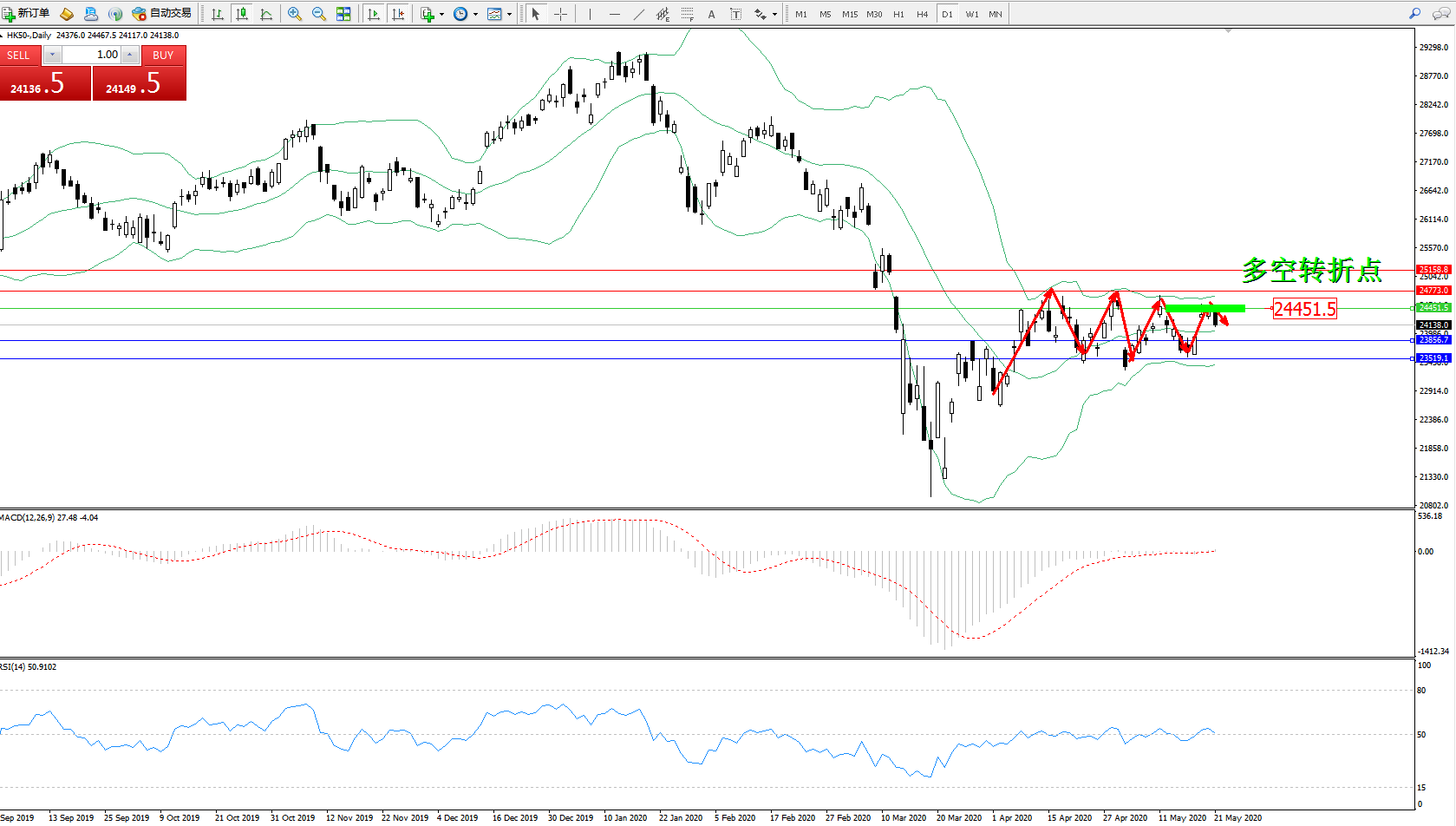 香港恒生指数521日(周四)收盘下跌119.92点,跌幅0.49%,报24280.03点;港股三大指数收跌,生物医药B类股午后全线大跌, 康希诺生物-B跳水暴跌13%,或与牛津ChAdOx1 nCoV-19疫苗宣告失败有关;半导体、在线教育、体育用品、航空股、濠赌股皆现普跌行情,三大航空股均跌超2%,中芯国际大跌超7%;前期强势的SaaS概念股全部走低,中国有赞跌逾5%。美国股市显示出自3月的大幅下跌中复苏的迹象,但许多基金经理对美国股市的前景并不乐观。投资者应仔细考虑在当前环境下购买美国股票是否正确;外围股市中概股普跌,美参议院通过一项新法案或导致中概股大量退市。