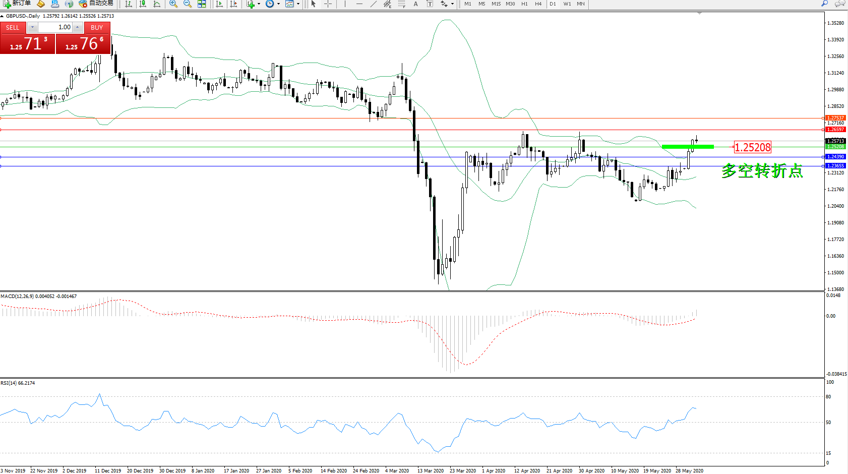 交易策略:1.25208上方看涨,目标1.26597、1.27537