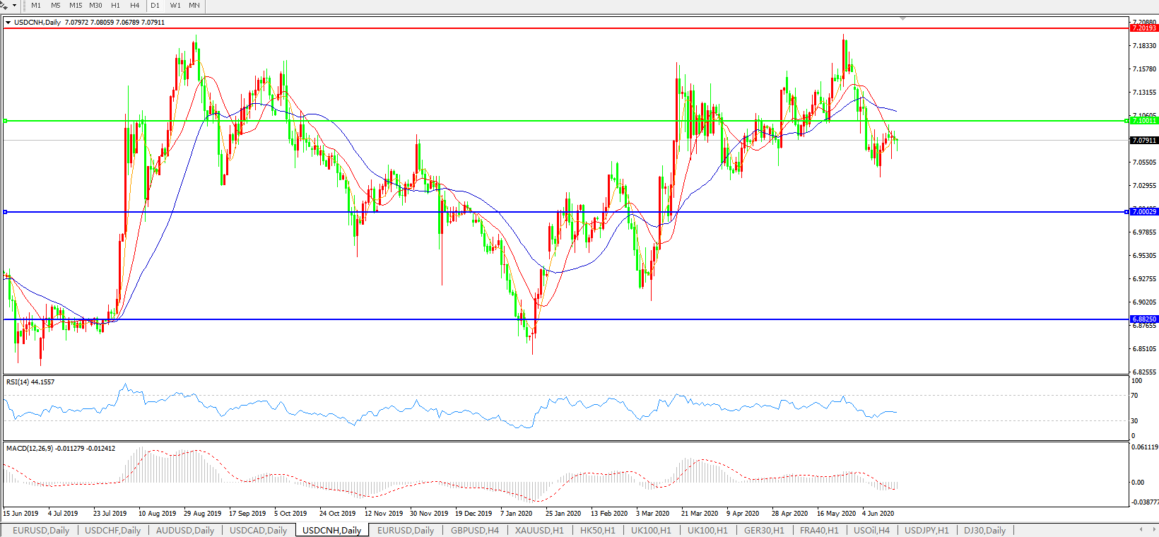 美元兑人民币USDCNH    日线图: