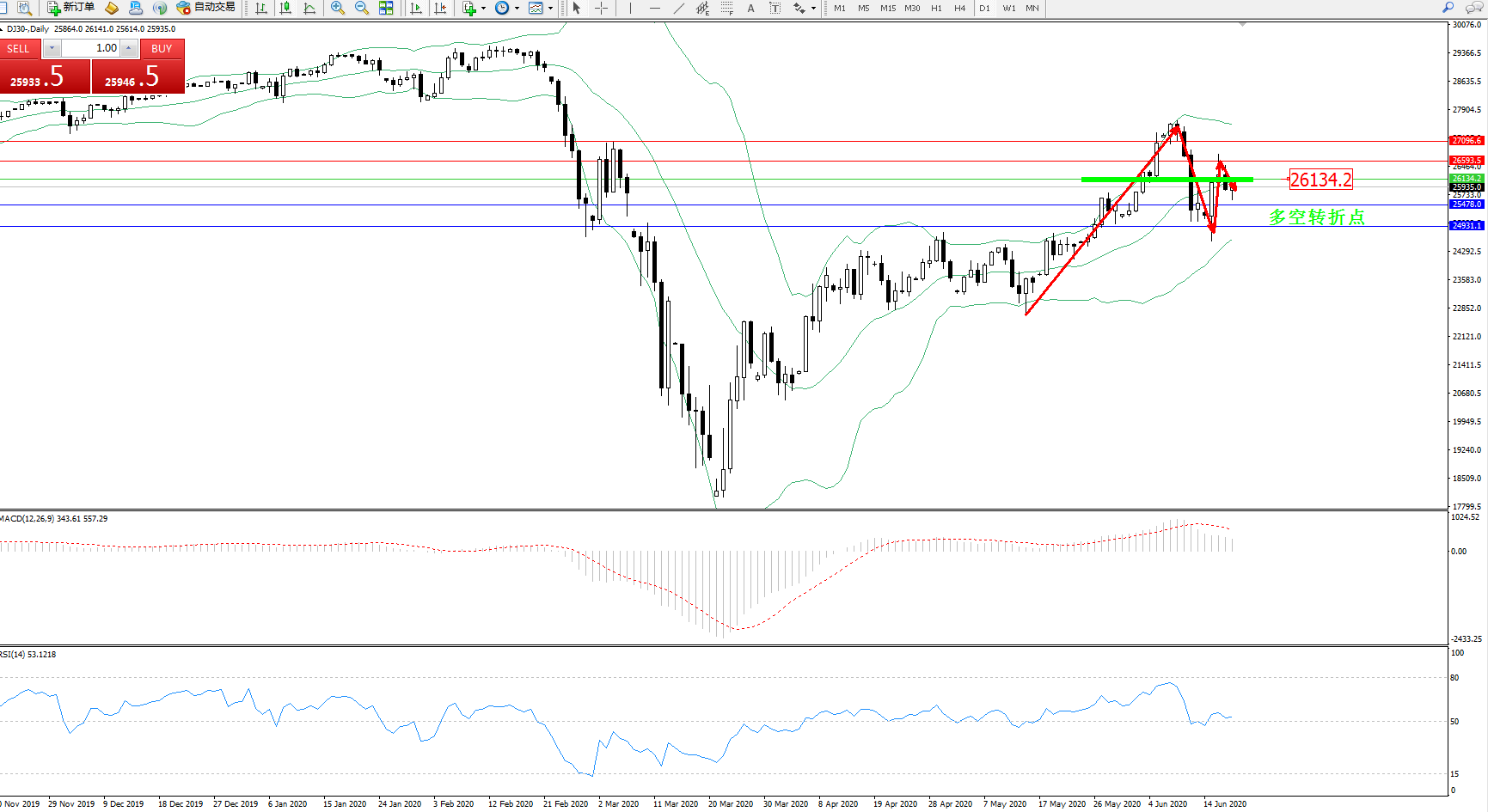 道琼斯指数6月18日(周四)收盘下跌39.50点,跌幅0.15%,报26080.10点。美国股市周四大部分时间窄幅波动,能源股、必需消费股和科技股领涨,投资者评估最新经济数据以及疫情发展。经济、政治、业绩和疫情各方面交叉影响市场,所有一切都存在不确定性。桥水基金警告,美国企业利润率多年强劲增长势头的逆转可能导致股票投资者遭遇“失去的十年”。美元周四创一周最大涨幅,因美国首次申请失业救济人数连续第13周突破100万人,反映了刺激经济面临的挑战之艰巨,对美国疫情再度抬头的担忧也支撑了美元.