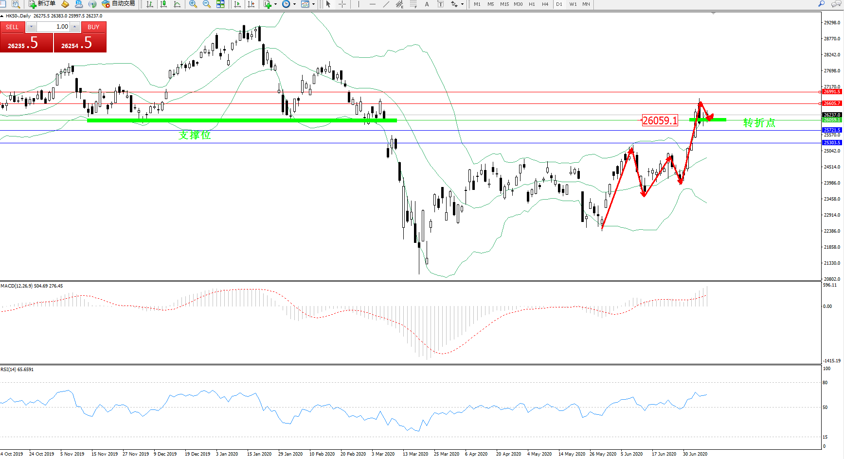 香港恒生指数79日(周四)收盘上涨80.98点,涨幅0.31%,报26210.16点;港股三大指数均收涨,恒指盘中曾几度转跌,尾盘回升明显。南下资金大幅流入90.39亿港元,大市成交额为2068亿港元。南美疫情持续蔓延推动铜价上涨,江西铜业大涨逾7%;军工股、半导体延续强势,中船防务再飙近18%;新冠肺炎在香港出现第三波暴发,香港本地股普跌。阿里涨10%创新高,美团涨5%,小米涨4.6%,阿里、美团及小米8月可纳入成份股选股范围。港交所推新产品的步伐快于预期,如果成交量快速上升,将可提升现时预测。港交所潜在上升的催化剂,包括市场活动大幅增加、中概股加快回归作第二上市、GBA的流动性改善及投资收入较预期佳。