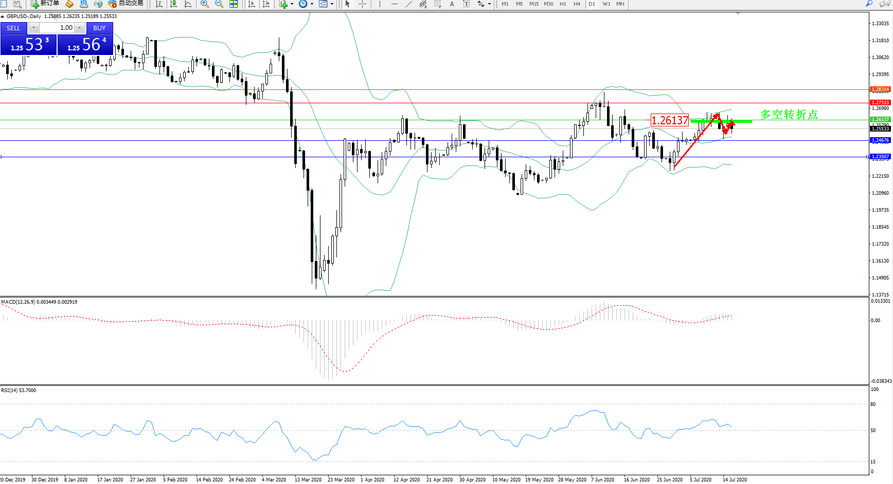 交易策略:1.26137下方看跌,目标1.241861.23083